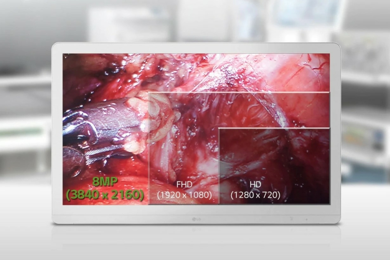 - Màn hình IPS 4K (3840 x 2160) với sRGB 115%: Độ phân giải 4K cao gấp 4 lần so với những màn hình Full HD đời trước đó đem đến chất lượng hình ảnh sắc nét và chân thực. Những vết khâu, mạch máu nhỏ được hiển thị rõ ràng hơn trên màn hình 4K giúp các bác sĩ dễ dàng quan sát và thực hiện. Ngoài ra, hình ảnh Full HD có độ phân giải dưới 4K có thể được tối ưu hóa cho màn hình 4K.