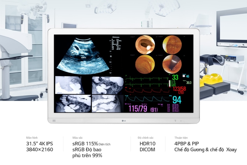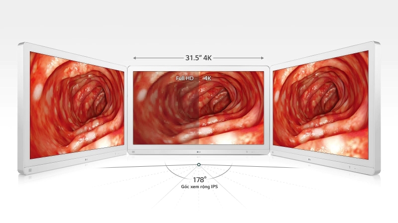 - Màn hình IPS 31.5 inch với độ phân giải 4K (3840 x 2160): Nhà sản xuất LG đã trang bị cho chiếc màn hình tấm nền IPS với độ rộng lên tới 31.5 inch cùng độ phân giải 4K mang đến chất lượng hình ảnh vô cùng sắc nét và chân thực, giúp các y bác sĩ có thể thấy rõ từng mạch máu, vết khâu của bệnh nhân. Với góc nhìn 178 độ, các bác sĩ từ vẫn có thể quan sát được màn hình từ các góc khác nhau.