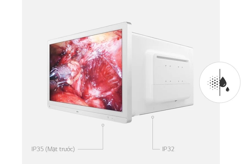 - IP35 (mặt trước) & IP32 (ngoại trừ mặt trước): Giúp bảo vệ màn hình từ mọi hướng, đặc biệt chống tiếp xúc với các chất lỏng như máu, dịch cơ thể…